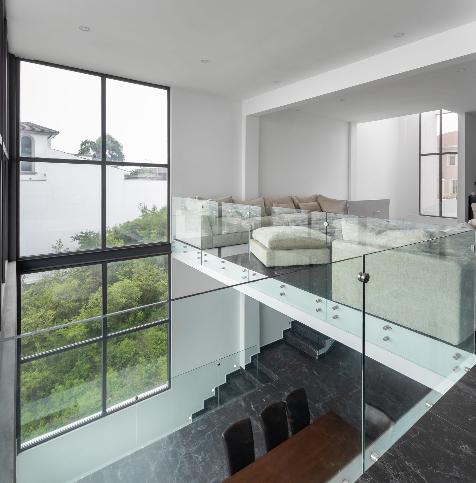 La planta baja está dedicada al área social: una cocina abierta se integra con la sala, el bar y el comedor, todos con una espectacular vista directa hacia la Marina, reforzando la conexión entre el interior y el paisaje.